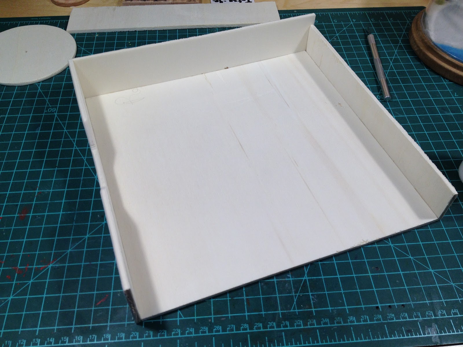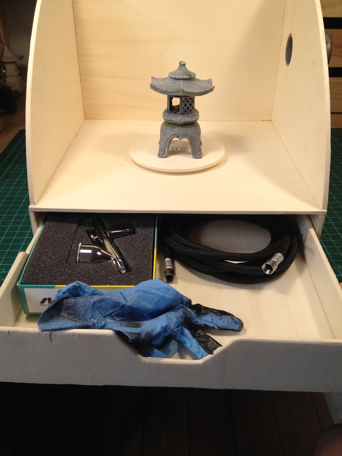 J'ai donc fabriqué une station peinture/photo avec quelques chutes de CP et des trucs récupérés.